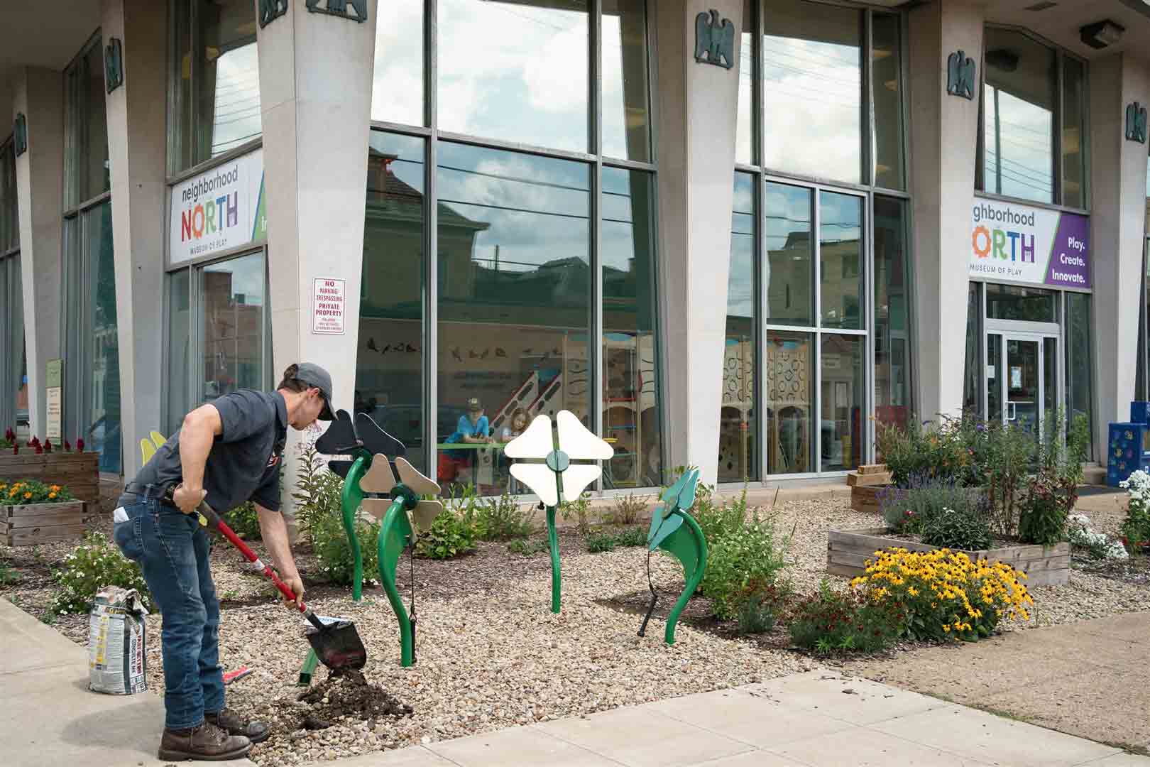 Through a grant from Arts Equity Reimagined fund, NN was able to work with consultants from the Playful Learning Action Network and the Temple Infant & Child Lab between 2021-2023 to learn about the science behind activating art to create playful learning exhibits within our urban community landscapes.