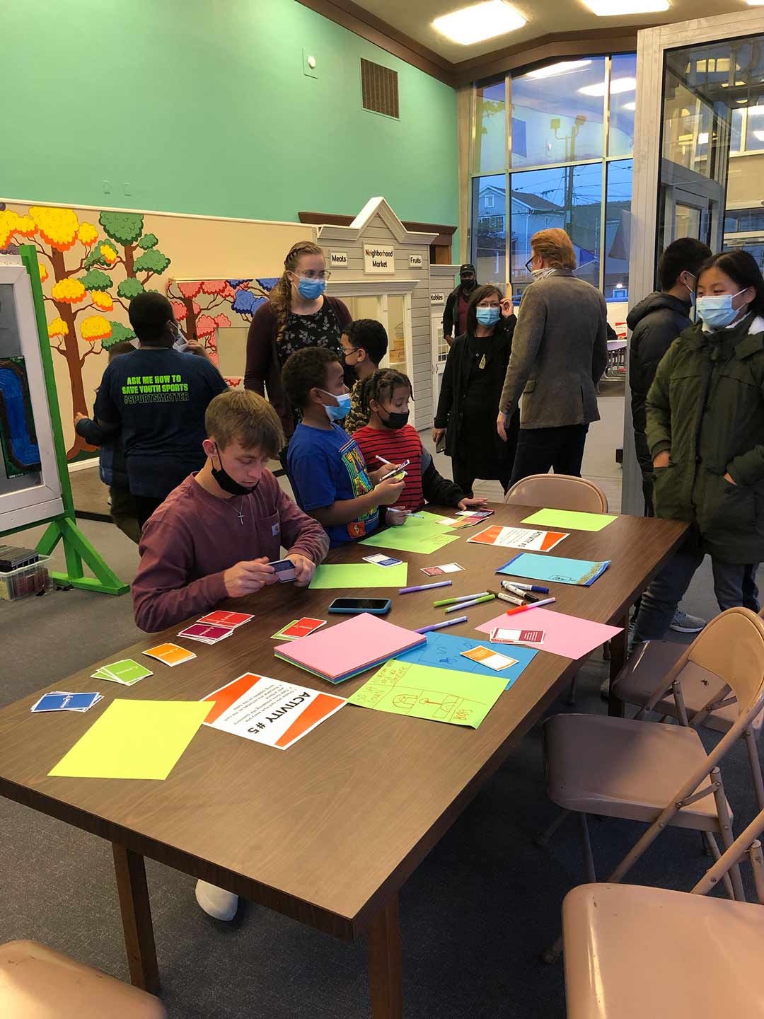 Our working artist group designed 3 exhibits that reflected the values and goals that our community indicated were most important- sports, storytelling, collaboration, and learning.